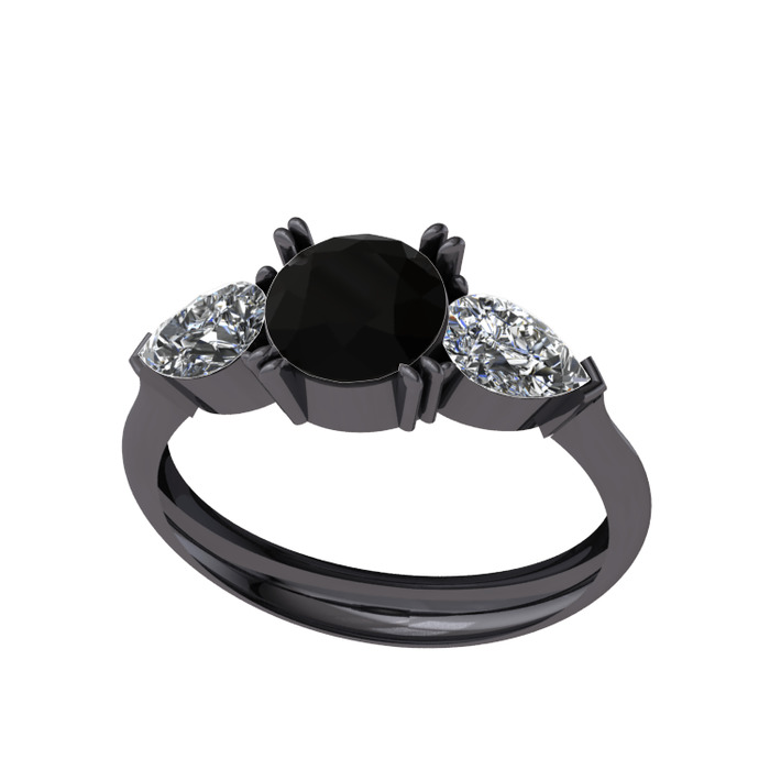 Siyah zirkon ve swarovski 925 ayar siyah rodyum kaplama gümüş yüzük