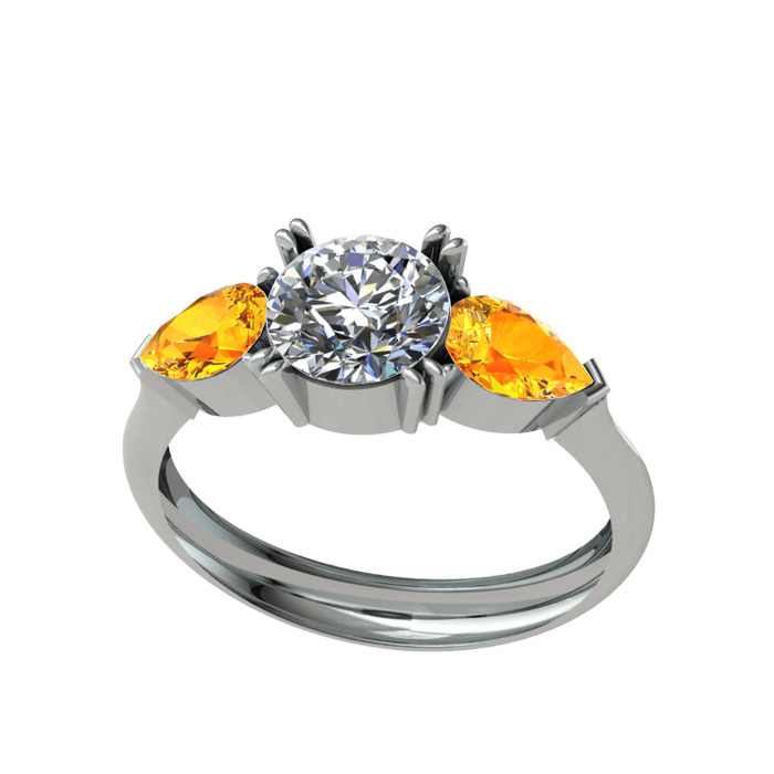 Swarovski ve sitrin 14 ayar beyaz altın yüzük