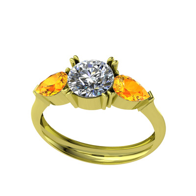 Swarovski ve sitrin 925 ayar altın kaplama gümüş yüzük