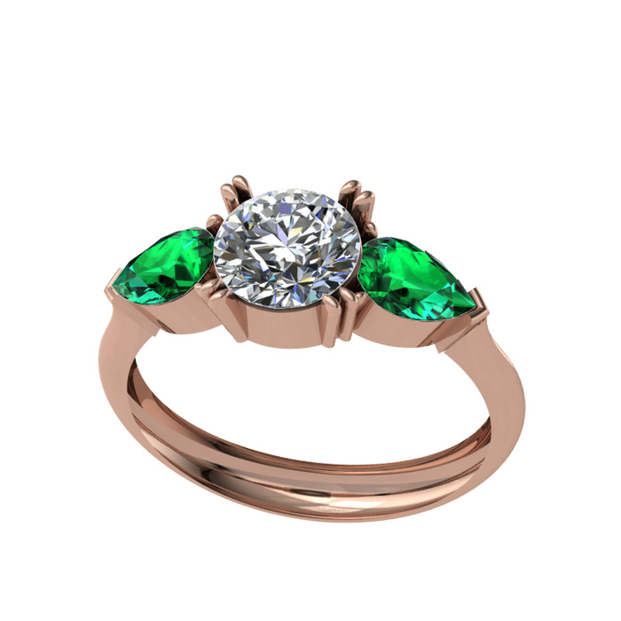 Swarovski ve yeşil kuvars 8 ayar rose altın yüzük