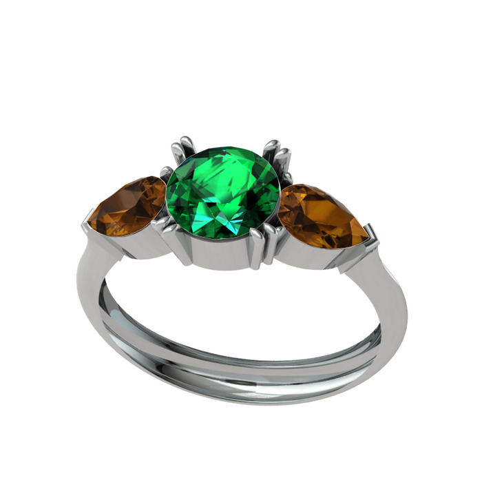 Yeşil kuvars ve dumanlı kuvars 14 ayar beyaz altın yüzük