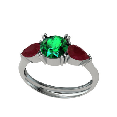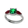 Yeşil kuvars ve kök yakut 14 ayar beyaz altın yüzük