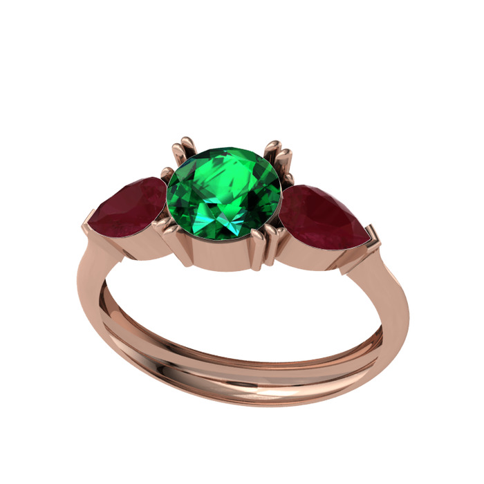 Yeşil kuvars ve kök yakut 8 ayar rose altın yüzük