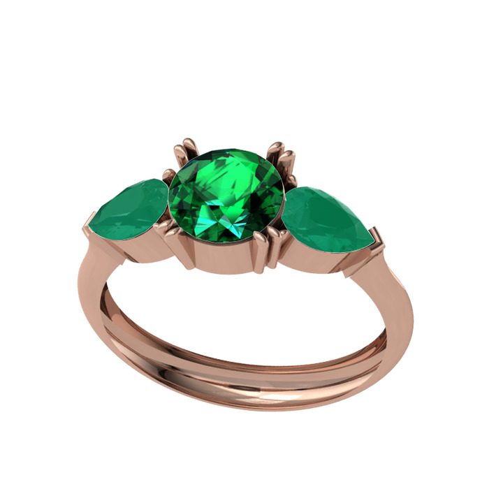 Yeşil kuvars ve kök zümrüt 14 ayar rose altın yüzük
