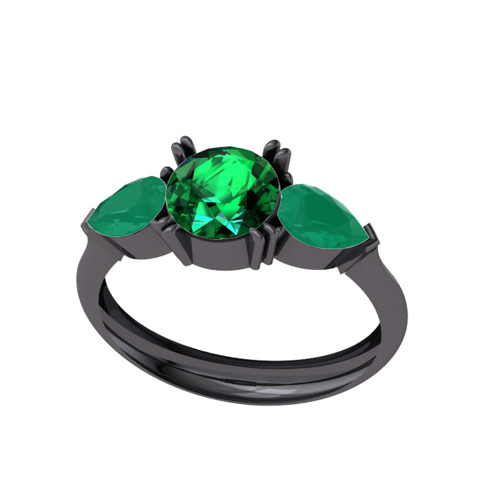 Yeşil kuvars ve kök zümrüt 925 ayar siyah rodyum kaplama gümüş yüzük