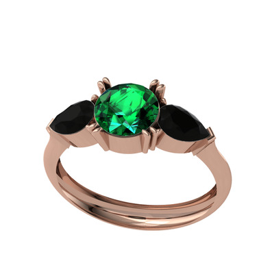 Yeşil kuvars ve siyah zirkon 14 ayar rose altın yüzük
