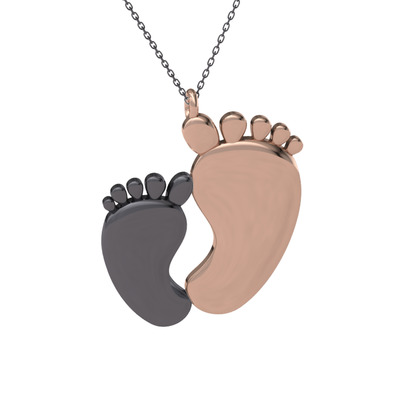 Bebek Ayağı Kolye - 925 ayar siyah rodyum kaplama gümüş kolye (40 cm gümüş rolo zincir)