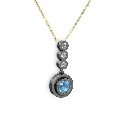 Akuamarin ve beyaz zirkon 925 ayar siyah rodyum kaplama gümüş kolye (40 cm gümüş rolo zincir)
