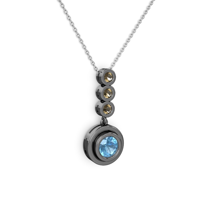 Akuamarin ve dumanlı kuvars 925 ayar siyah rodyum kaplama gümüş kolye (40 cm beyaz altın rolo zincir)
