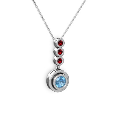Akuamarin ve garnet 8 ayar beyaz altın kolye (40 cm gümüş rolo zincir)