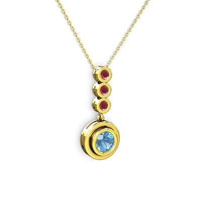 Akuamarin ve kök yakut 18 ayar altın kolye (40 cm altın rolo zincir)