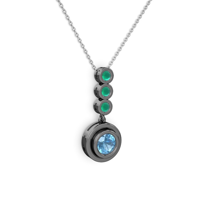 Akuamarin ve kök zümrüt 925 ayar siyah rodyum kaplama gümüş kolye (40 cm beyaz altın rolo zincir)