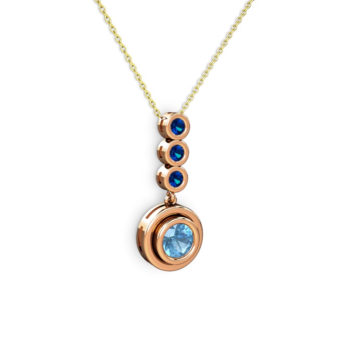 Akuamarin ve lab safir 8 ayar rose altın kolye (40 cm altın rolo zincir)