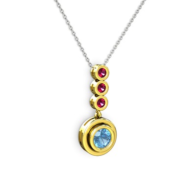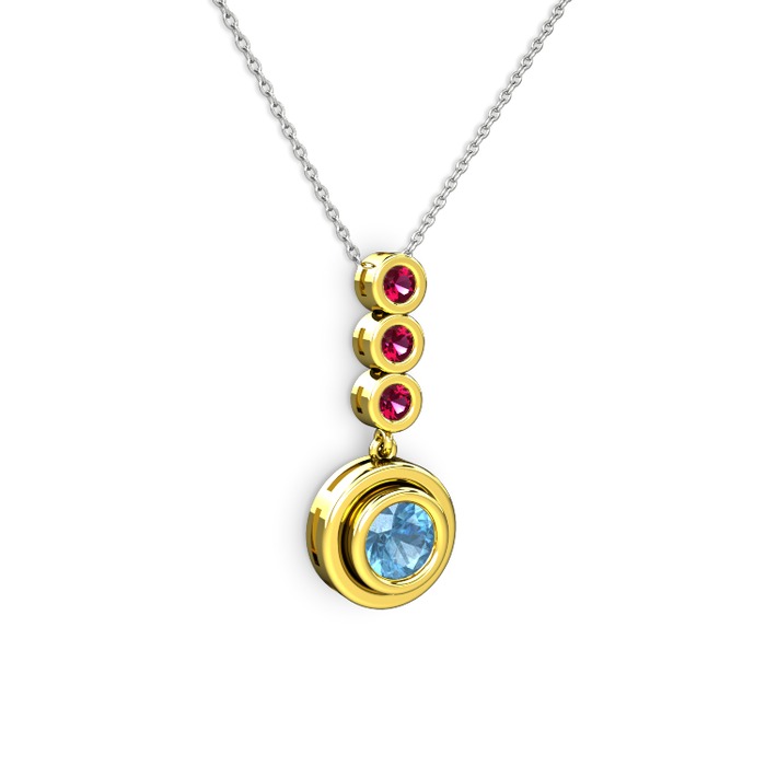 Akuamarin ve rodolit garnet 14 ayar altın kolye (40 cm gümüş rolo zincir)