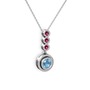 Akuamarin ve rodolit garnet 8 ayar beyaz altın kolye (40 cm beyaz altın rolo zincir)
