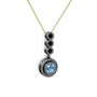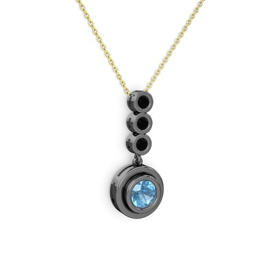 Akuamarin ve siyah zirkon 925 ayar siyah rodyum kaplama gümüş kolye (40 cm gümüş rolo zincir)