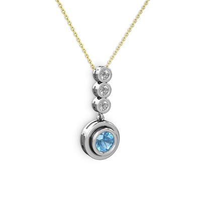 Akuamarin ve swarovski 925 ayar gümüş kolye (40 cm altın rolo zincir)