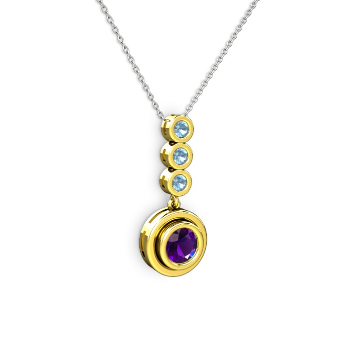 Ametist ve akuamarin 18 ayar altın kolye (40 cm beyaz altın rolo zincir)
