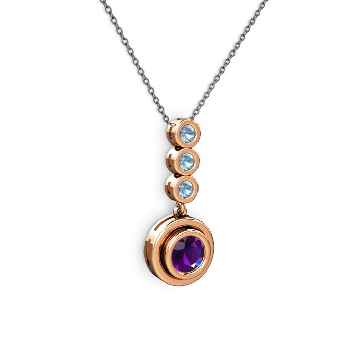 Ametist ve akuamarin 8 ayar rose altın kolye (40 cm gümüş rolo zincir)