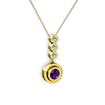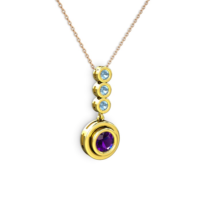 Ametist ve akuamarin 925 ayar altın kaplama gümüş kolye (40 cm rose altın rolo zincir)