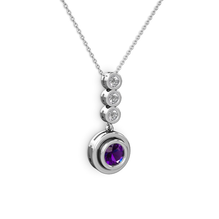 Ametist ve beyaz zirkon 14 ayar beyaz altın kolye (40 cm beyaz altın rolo zincir)