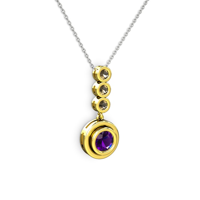 Ametist ve dumanlı kuvars 18 ayar altın kolye (40 cm beyaz altın rolo zincir)