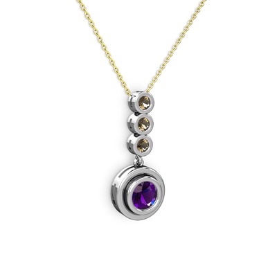 Ametist ve dumanlı kuvars 925 ayar gümüş kolye (40 cm altın rolo zincir)