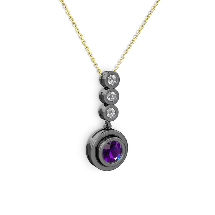 Ametist ve elmas 925 ayar siyah rodyum kaplama gümüş kolye (0.33 karat, 40 cm altın rolo zincir)