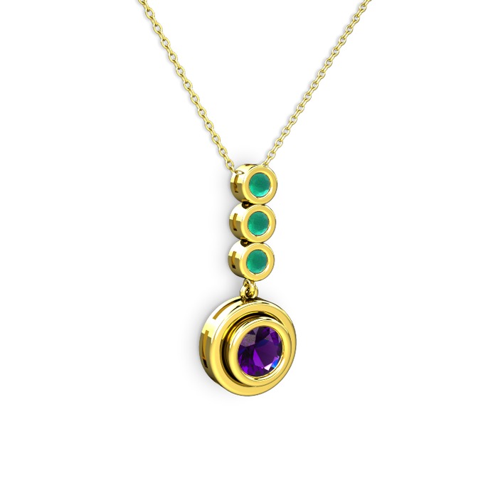 Ametist ve kök zümrüt 8 ayar altın kolye (40 cm altın rolo zincir)