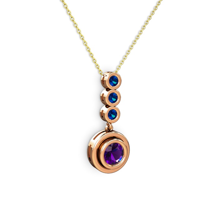 Ametist ve lab safir 14 ayar rose altın kolye (40 cm altın rolo zincir)