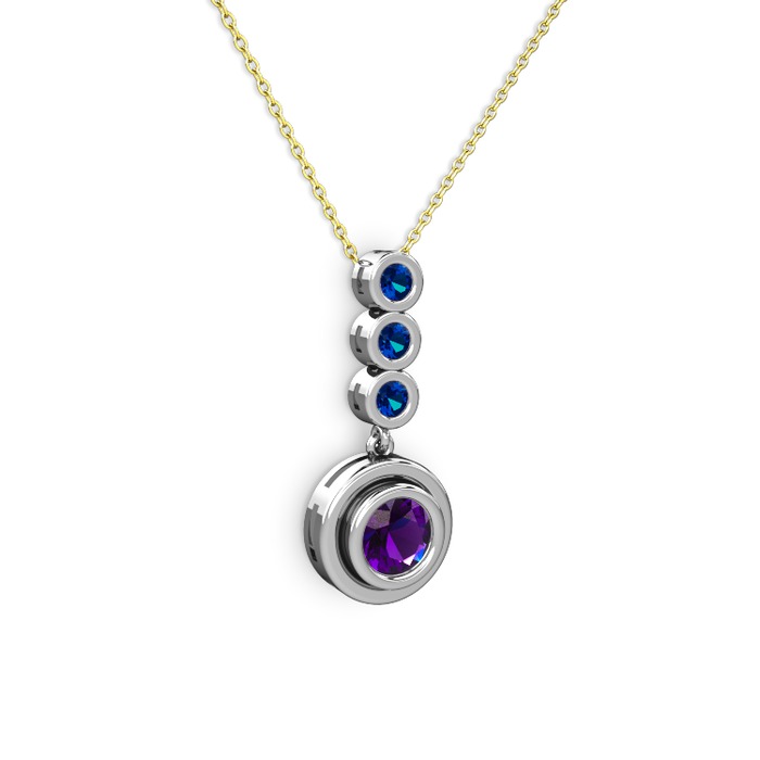 Ametist ve lab safir 8 ayar beyaz altın kolye (40 cm gümüş rolo zincir)