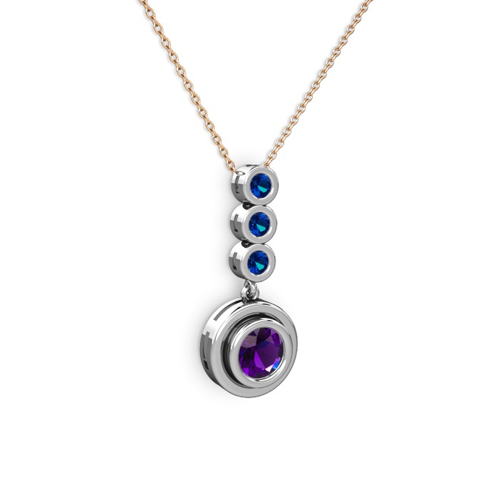 Ametist ve lab safir 925 ayar gümüş kolye (40 cm rose altın rolo zincir)