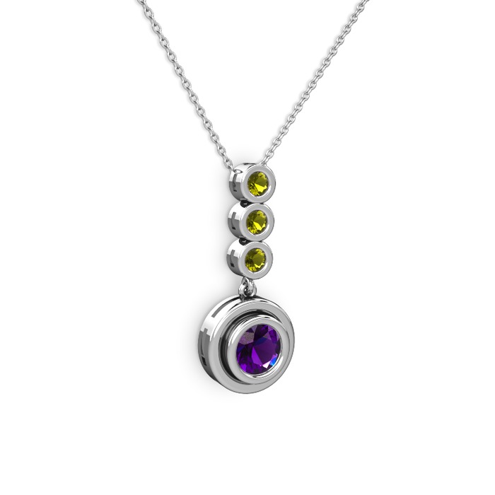 Ametist ve peridot 925 ayar gümüş kolye (40 cm beyaz altın rolo zincir)
