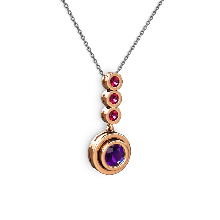 Ametist ve rodolit garnet 14 ayar rose altın kolye (40 cm gümüş rolo zincir)