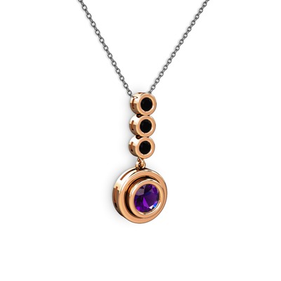 Ametist ve siyah zirkon 14 ayar rose altın kolye (40 cm gümüş rolo zincir)