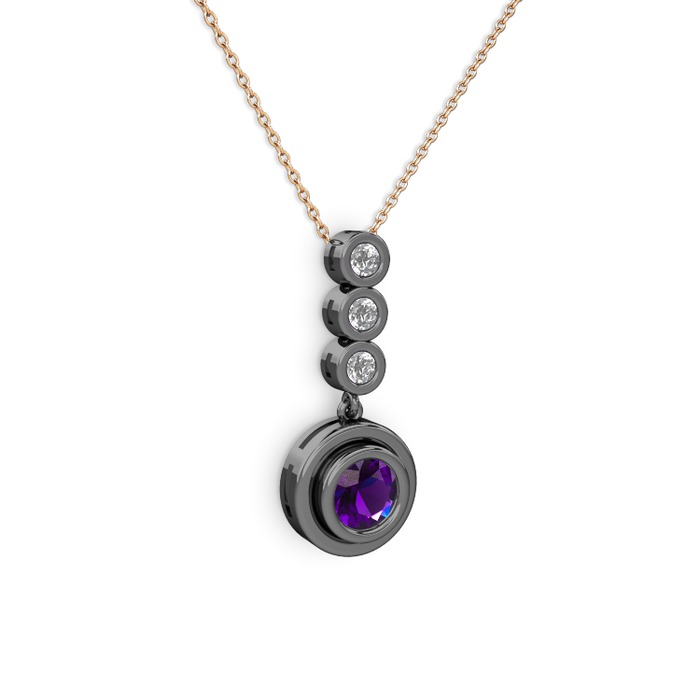 Ametist ve swarovski 925 ayar siyah rodyum kaplama gümüş kolye (40 cm rose altın rolo zincir)