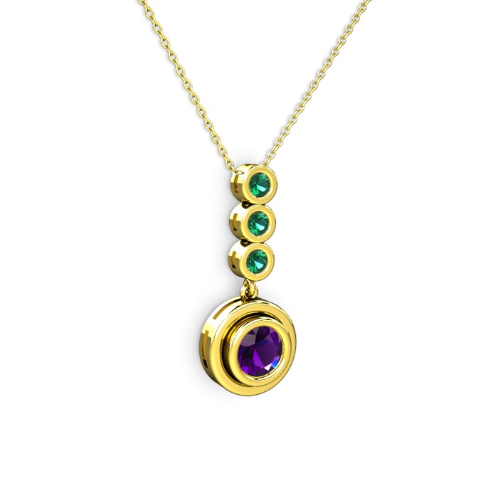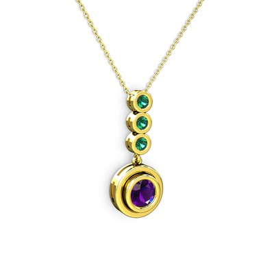 Ametist ve yeşil kuvars 8 ayar altın kolye (40 cm altın rolo zincir)