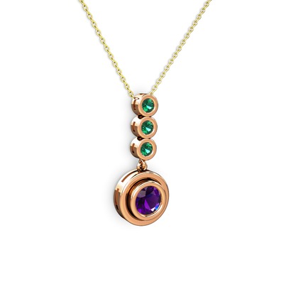 Ametist ve yeşil kuvars 925 ayar rose altın kaplama gümüş kolye (40 cm altın rolo zincir)