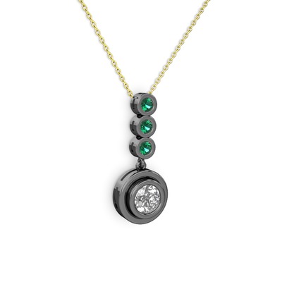 Beyaz zirkon ve yeşil kuvars 925 ayar siyah rodyum kaplama gümüş kolye (40 cm gümüş rolo zincir)