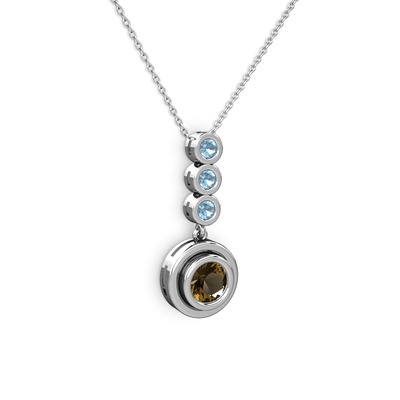 Dumanlı kuvars ve akuamarin 8 ayar beyaz altın kolye (40 cm beyaz altın rolo zincir)