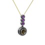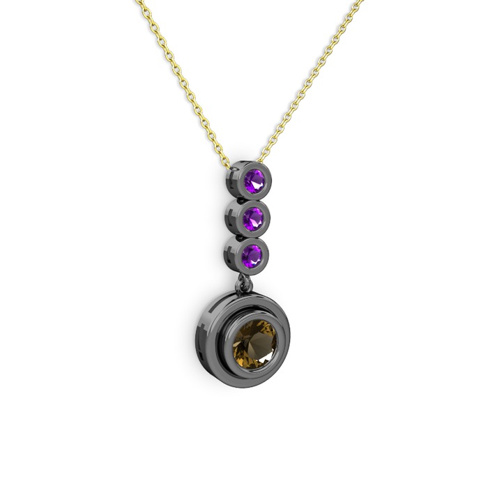 Dumanlı kuvars ve ametist 925 ayar siyah rodyum kaplama gümüş kolye (40 cm gümüş rolo zincir)