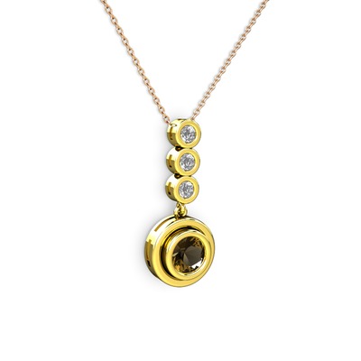 Dumanlı kuvars ve beyaz zirkon 8 ayar altın kolye (40 cm rose altın rolo zincir)