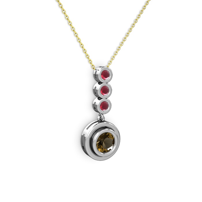Dumanlı kuvars ve kök yakut 925 ayar gümüş kolye (40 cm altın rolo zincir)