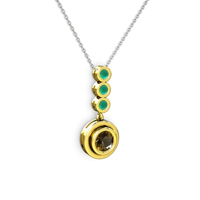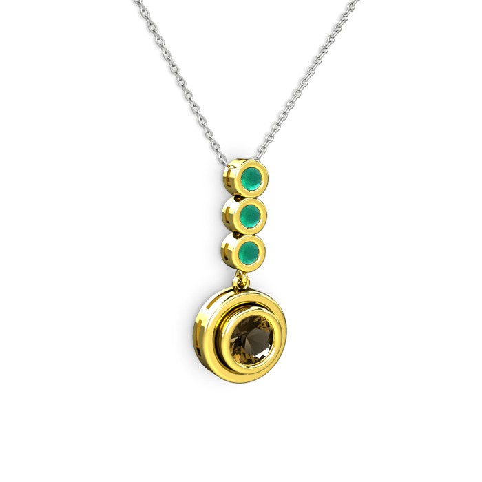 Dumanlı kuvars ve kök zümrüt 18 ayar altın kolye (40 cm beyaz altın rolo zincir)