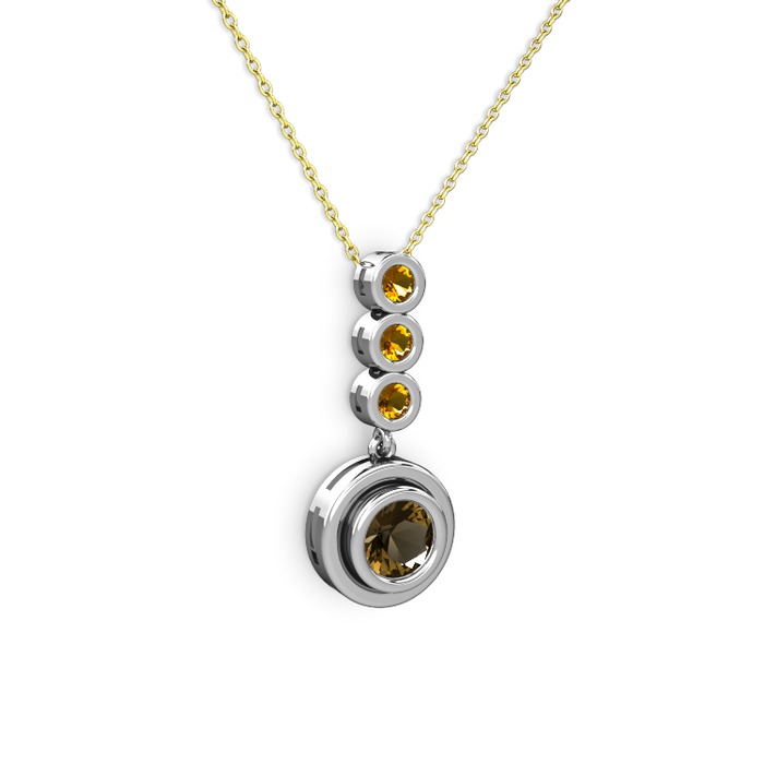 Dumanlı kuvars ve sitrin 8 ayar beyaz altın kolye (40 cm gümüş rolo zincir)