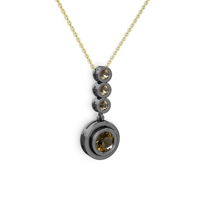 Dumanlı kuvars 925 ayar siyah rodyum kaplama gümüş kolye (40 cm altın rolo zincir)