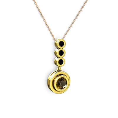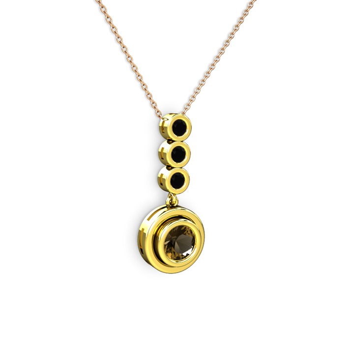 Dumanlı kuvars ve siyah zirkon 14 ayar altın kolye (40 cm rose altın rolo zincir)