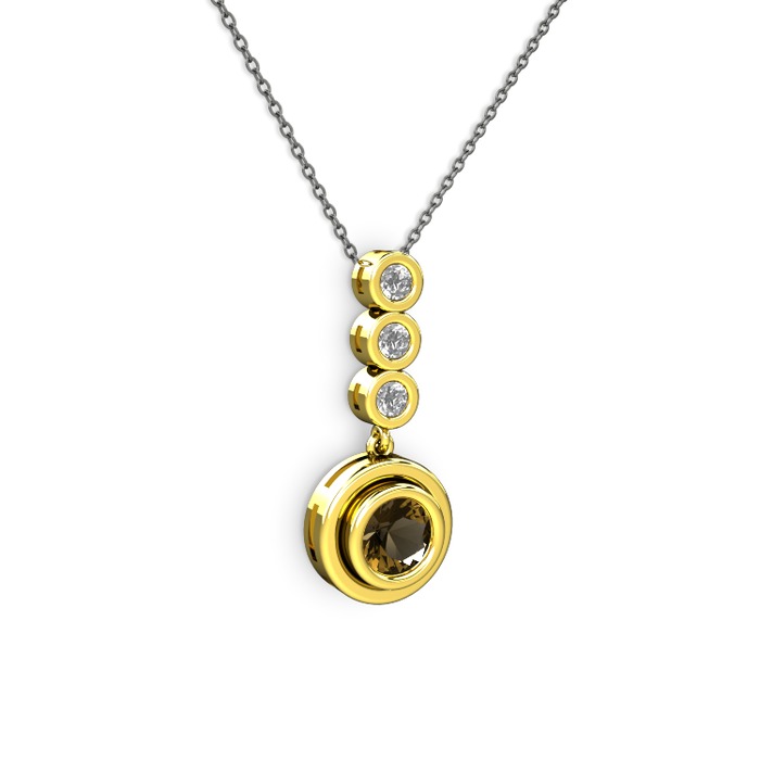 Dumanlı kuvars ve swarovski 14 ayar altın kolye (40 cm gümüş rolo zincir)