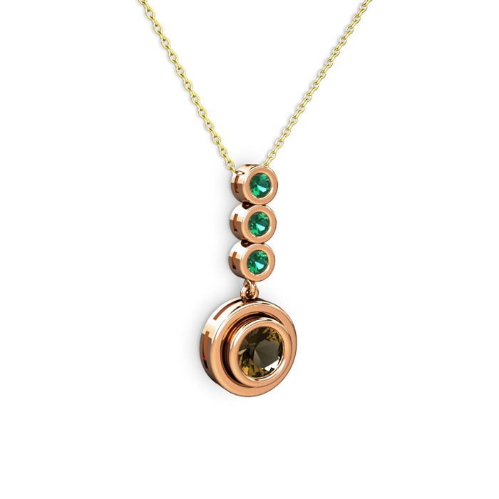 Dumanlı kuvars ve yeşil kuvars 18 ayar rose altın kolye (40 cm altın rolo zincir)
