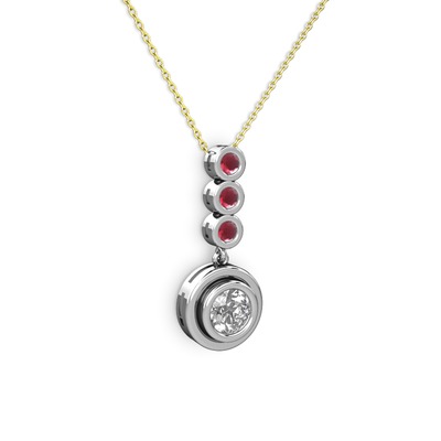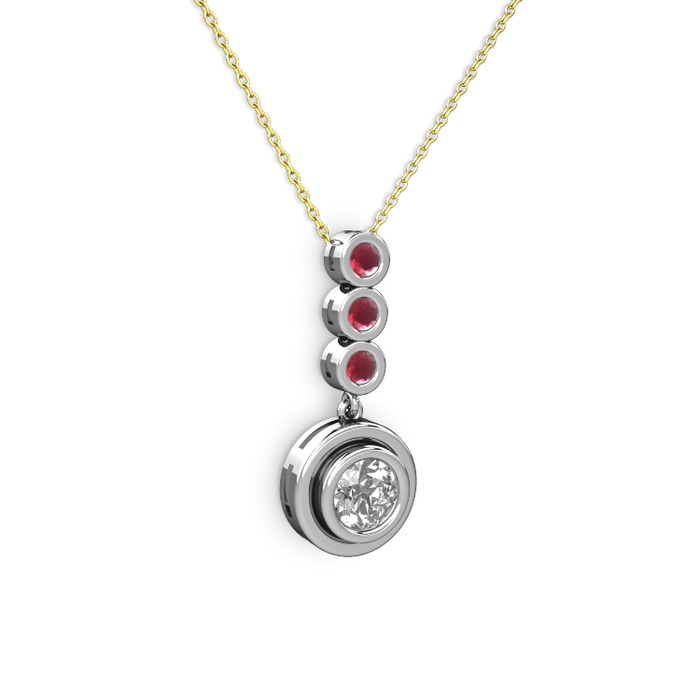 Elmas ve kök yakut 14 ayar beyaz altın kolye (0.68 karat, 40 cm gümüş rolo zincir)